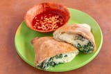 Filled with mozzarella spinach and ricotta cheese. Served with sauce on the side.